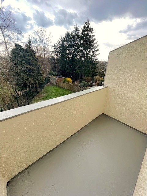 Geradeaus im Flur erreichen Sie das Badezimmer mit WC. Links daneben gelangen Sie in den hellen Wohnraum mit Küchenanschluss. Von hier aus haben Sie direkten Zugang zum Balkon, der zum Entspannen im Freien einlädt und einen schönen Blick ins Grüne bietet.